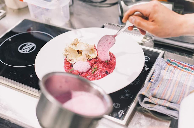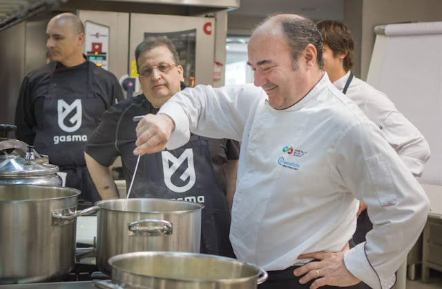 tradicionales como la paella valenciana de Juan Carlos Galbis, el arroz de la abuela con chipirones y salmonetes de Casa Jaime en Peñíscola, o la paella de puchero de Casa Levante en Benisanó, la creatividad del arroz de remolacha y anguila de Bernd Knöller (Riff), los platos en torno al arroz como la salmuera de gamba o merluza a la japonesa de Rafa Morales, la boloñesa de pescados azules y nabo de Vicente Patiño (Saiti) o cardos, alcachofas y panceta Joselito de César Marquiegui (Nou Manolín), la experiencia del menú maridado con Manuela Romeralo (El Poblet), y la creatividad de un restaurante con tres estrellas Michelín con Juanfra Valiente (Quique Dacosta) son parte del contenido que durante estos cinco meses cada uno de los formadores ha trasladado a los alumnos.