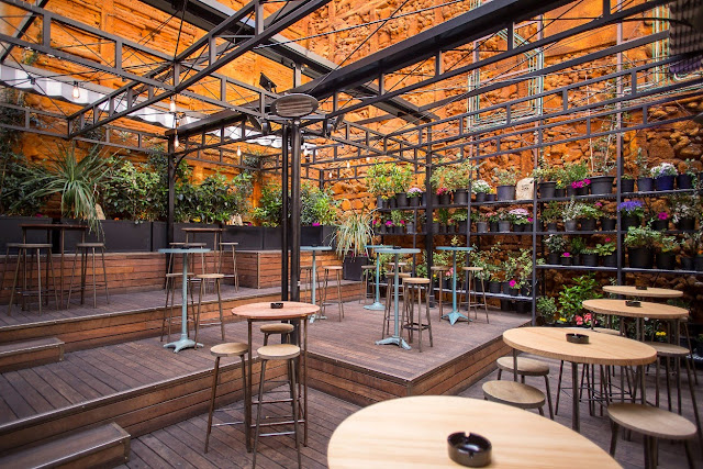: la principal, recubierta por un graderío de madera que genera la sensación de estar en una plaza más de las que esconde el barrio de Malasaña, o la segunda, un pequeño rincón entre plantas rodeado de vegetación a modo de un bucólico parquecillo urbano.