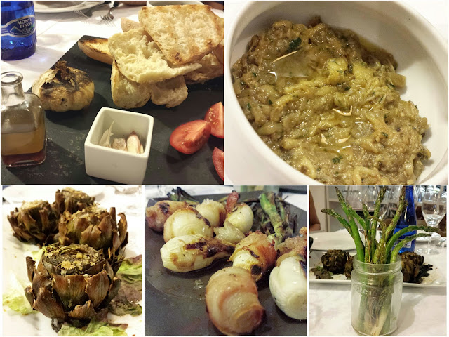 Otro de los puntos fuertes de Meat Market, son las verduras , traídas diariamente desde el Mercado Central de Valencia y pequeños productores nacionales, dependiendo de la temporada para garantizar el máximo sabor y frescura; el plato de verduras a la brasa está compuesto de Espárragos de Granada con romero de la Sierra de Espadán, Caviar de berenjenas de Almagro, Alcachofas de Tolosa al estilo de Benicarló, Involtini de cebolleta tierna de Benimaclet con panceta ibérica, Tomate maduro y Ajo de las Pedroñeras a la brasa, acompañados de Pan de agua a la brasa y Aceite de escalibada .