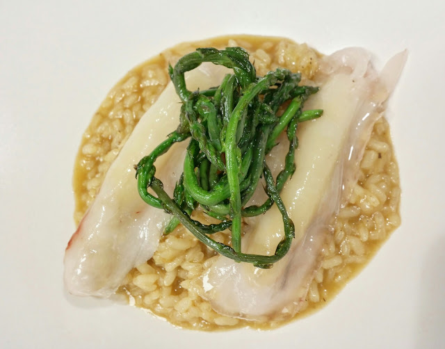 Arroz con atún y remolacha, Arroz con ostras, coliflor y cítricos, Arroz de espárragos con velo de tocino Joselito ó el Arroz meloso de montaña