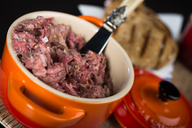 | Charcutería hecha en casa - Rillete de atún de la Amadraba para untar sobre pan de centeno y salsa tártara |