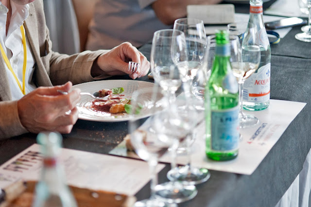 - El presidente de la Academia de Sumillería de España, Juan Muñoz, ha acompañado el maridaje S.Pellegrino y Acqua Panna con una selección de vinos y cavas