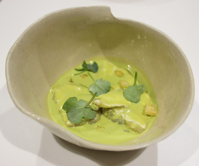 Jugos y juegos con pepino y calamar, tomate, melocotón y poleo; fondos, caldos y texturas con la huerta, el mar y el monte de protagonistas (el caldo texturizado que te sirven de bienvenida en Ricard Camarena Restaurant es de los que cierras los ojos y te ves en la cocina de tu abuela hace muchos, muchos años).