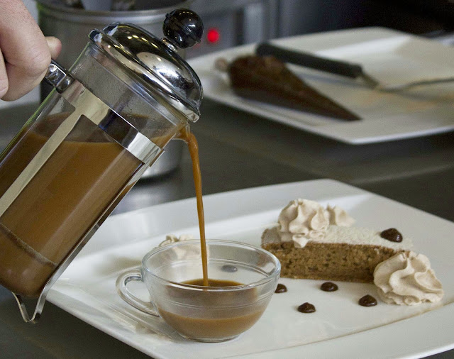 Praliné de Chufa, coca de llanda de la misma y café de Valencia