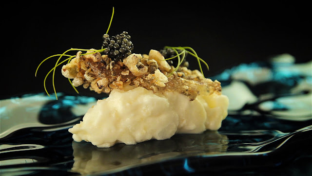 - Aperitivos : Pan de queso y mermelada de papaya; aceite de oliva virgen extra; mantequilla de caviar; tartar de caracol; dipa de esturión; ostra nostra; calabaza agridulce con huevas de salmón; chilcano.
