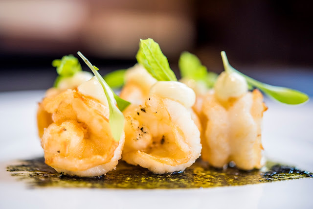 LANGOSTINOS FRITOS CON ACEITE DE NORI Y MAHONESA DE WASABI