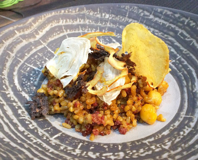 arroz con sepia, manitas y setas