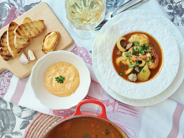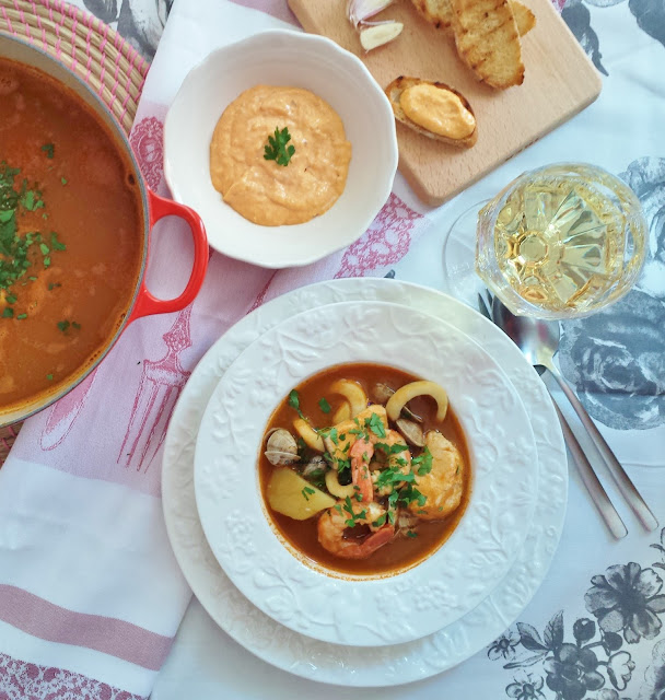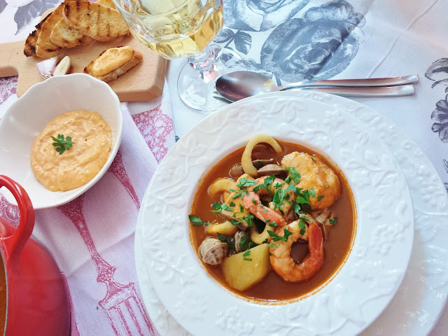 Nuestra receta es una adaptación de toda esta riqueza gastronómica, intentando conservar las bases que dieron lugar a ellas: pescados y mariscos locales, del día, fondos y sofritos caseros, y una salsa muy fácil de preparar, entre un xató y una rouille, con una base de A jonesa de Chovi, elegida como producto del año 2016 , para hacer una buena cant idad y guardarla en la nevera s in riesgo de intoxica ciones.