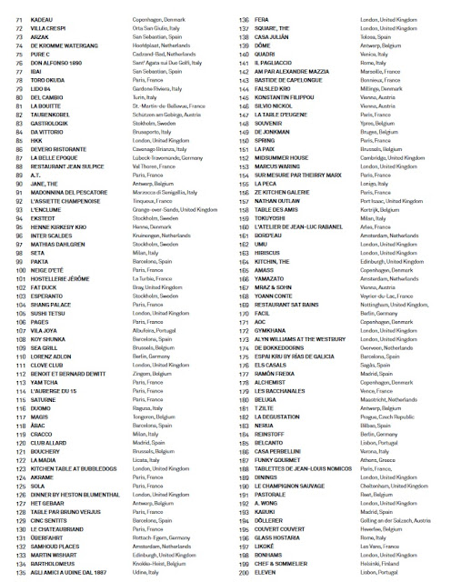 Los restaurantes procedentes de España, Francia, Bélgica, Italia y Dinamarca dominan normalmente la lista, y se trata de la