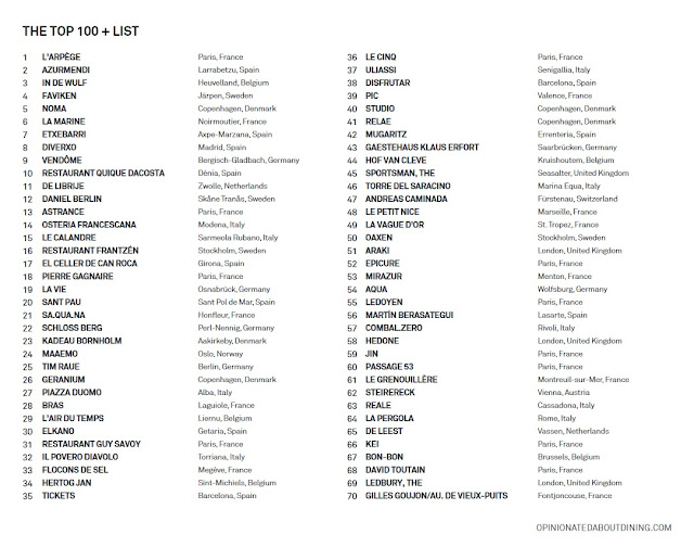 La encuesta llevada a cabo por Opinionated About Dining parte de la precisión estadística, la voluntad de transparencia, los paladares exigentes de expertos que viajan por todo el mundo y los votos ponderados de sus miembros, por lo que ofrece una perspectiva diferenciada de las demás clasificaciones de restaurantes. El algoritmo OAD genera un sistema de ranking que clasifica a los restaurantes a partir de las opiniones de la comunidad de miembros. Cada miembro influye en los resultados según el número de restaurantes que haya visitado y en función de la clasificación actual de dichos restaurantes. Anualmente, los restaurantes se clasifican utilizando una combinación de datos que incluye: el tipo de comentarios que genera el establecimiento (de positivo a negativo); el nivel de los colaboradores que lo visitaron (el porcentaje de colaboradores con y sin experiencia); y si el número de colaboradores que lo visitaron ese año ha aumentado, disminuido o si se ha mantenido estable. Utilizando este método, OAD elimina la disgregación de resultados que se dan en otros sistemas de votación basados en encuestas.
