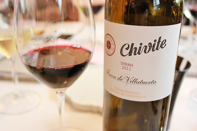 La uva syrah resplandeció con intensidad y nombre propio en el Chivite Finca de Villatuerta Syrah 2011 , un vino de intenso color oscuro, de aromas potentes y penetrantes, en el que predominaban los frutos del bosque y sorprendía por sus taninos maduros. Una auténtica delicia.