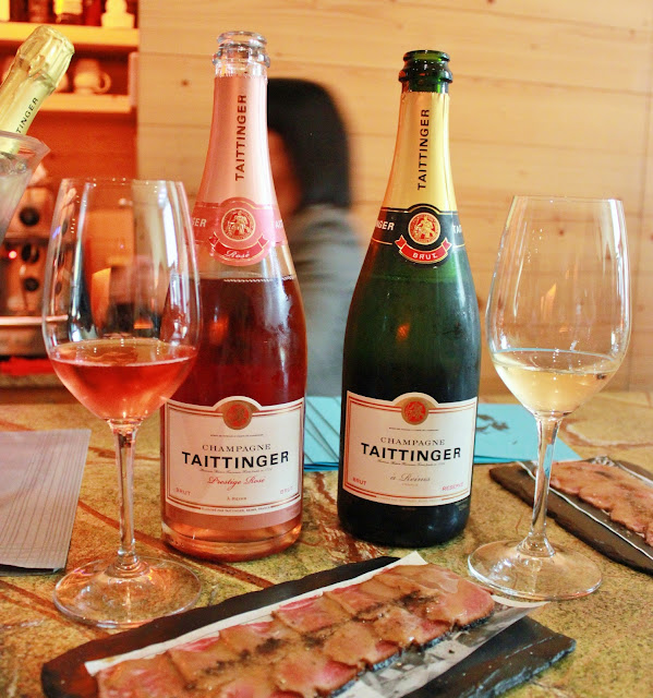 | Champange Taittinger Prestige Rosé Brut y Reserve Brut con Papel&Presa Ibérica |