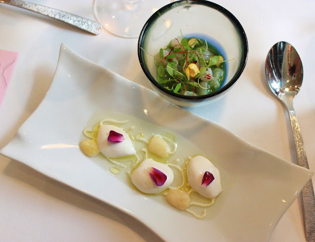 También pudimos disfrutar de un nuevo vino de la casa que acaba de aparecer en el mercado: Chivite Las Fincas Rosado 2015 , con garnacha y tempranillo, de color rosa pálido, con aromas frutales que recuerdan a la frambuesa, fresas y granadas. Un vino realmente equilibrado que ha sido creado especialmente para homenajear a Juan Mari y Elena Arzak , grandes amantes y defensores de los vinos rosados de Chivite . Un rosado que sorprende por su paladar y por su elegante botella.
