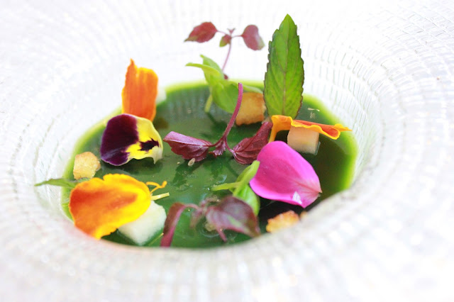 Cremoso de parmesano con velo de seis albahacas