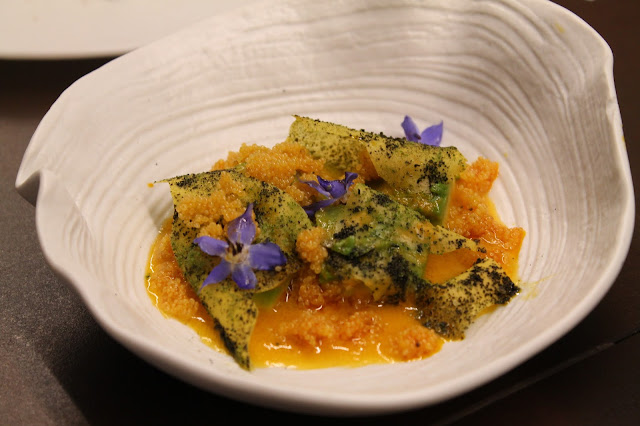 Entre la propuesta de Disfrutar, el chef peruano -nº 4 del mundo por World’s 50 Best Restaurants y nº 1 de World’s 50 Best Latinoamérica- insertó parte de su cocina actual de altura, que busca mostrar los productos agrupados por zonas y altimetrías del país andino. Así, los platos de Virgilio Martínez ( diversidad de maíz, suelo de mar, valle entre andes o cosecha y recolección ) fueron integrándose con sentido, ayudados por el maridaje presentado por el sumiller local. Rubén Po l propuso hasta ocho vinos eminentemente catalanes y un final con pisco para acompañar también al postre del de Perú, el tierra de alturas, una declaración de intenciones.