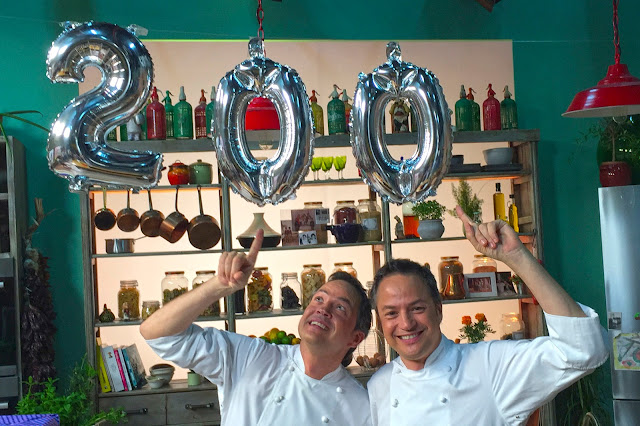 Javier y Sergio Torres, los cocineros de TVE, celebran esta efeméride con un suculento arroz de bogavante y una fideuá “mar y montaña” con mucho ‘Toque Torres’. Platos sencillos y resultones que no requieren técnicas muy complicadas y que están especialmente pensados para ocasiones festivas. En este programa, los gemelos Torres reciben la visita de todos los personajes que les han acompañado a lo largo de estos 200 capítulos, aportando ingredientes sorpresa que les ayudan a ejecutar sus recetas.