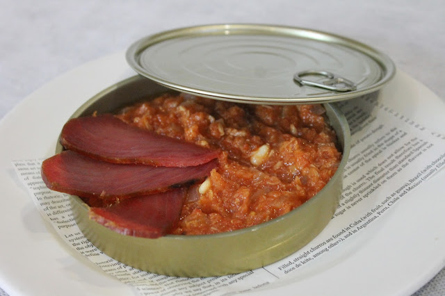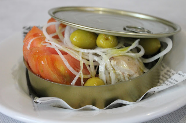 | 'Las Latas de Concha' - bonito casero y aceitunas con tomate y cebolleta de la huerta |