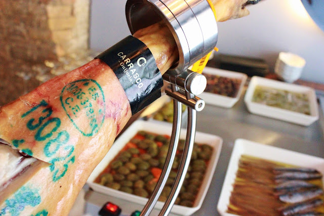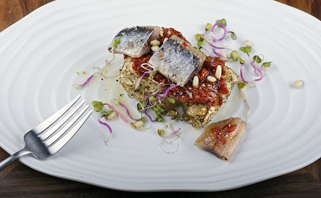 La Croqueta cremosa de jamón hay que comerla entera y dejar que su cremosidad y sabor invada la boca, mientras que la Coca de tomate concasé, confitado durante horas, acompañada con sardina ahumada y aceite de piñones es una tapa sobresaliente.