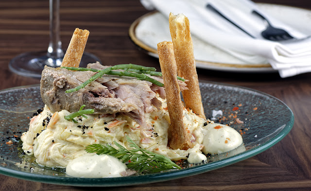 | Vinoblanco - Ensaladilla con bonito de elaboración casera y espuma de salicornia |