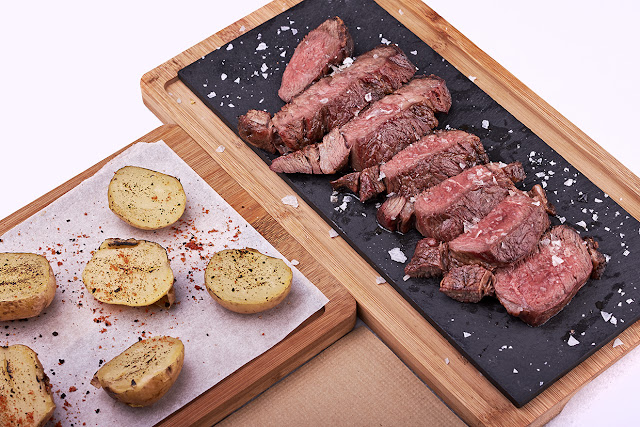 Dentro de la variedad de productos a la brasa comprobé las excelencias de la Panceta picante con puré de boniato y cardo fresco, y aderezada con un toque de curry y miel. En su forma de elaboración, pasa en primer lugar, por un horno convencional y más tarde por el horno de brasa. A este plato lo acompañó el vino Pasión Monastrell, de la bodega valenciana Sierra Norte. El Pulpo con Romescu Verde me agrado, pero quizás yo dejaría de lado la cebolla fresca porque realmente no aporta nada a un plato que iba felizmente acompañado del gustoso y frutal Riesling de Viñas del Vero . Para finalizar, saboreé un delicioso taco de Black Angus , la sabrosa ternera irlandesa, junto a unas pequeñas patatas al horno y maridada con Pasión Bobal , también de Bodegas Sierra Norte , un vino que denota ejemplaridad y elegancia.