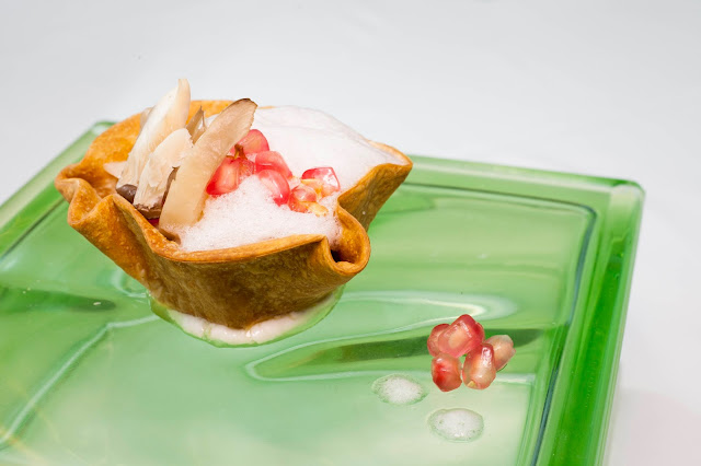 - Yogurt Micológico, Dry Boletus (Cóctel de Hongos Escabechados), Brandada de Boletus y Granada, Chipirón Caprichoso, Empanadilla de Boletus con Crema de Manzana o Vieira con Trigo Meloso y Crema de Trompeta Negra