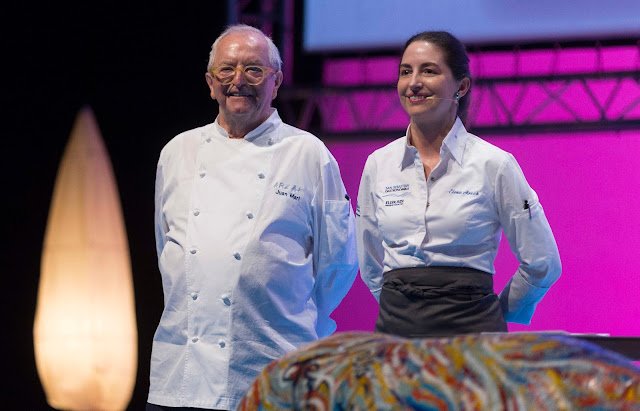 Para finalizar la jornada matinal, tres grandes de la cocina vasca. Juan Mari y Elena Arzak no podían falta a “su” congreso y han presentado su “ cocina para compartir ” y una versión dulce y fría de la empanadilla, “ una producto presente en todas las cocinas ”. Antes de finalizar han sorprendido con el uso de una plantilla para cocinar con un jeroglífico egipcio. El maestro de Akelarre, Pedro Subijana , ha cerrado la sesión sorprendiendo con una mantequilla “ diabólica ” de cabra y la potenciación de los cítricos –mano de Buda, caviar cítrico…- en muchos de sus postres.
