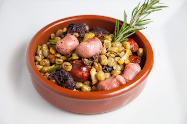 | Cazuelita de habas tiernas con longaniza, güeña y perro |