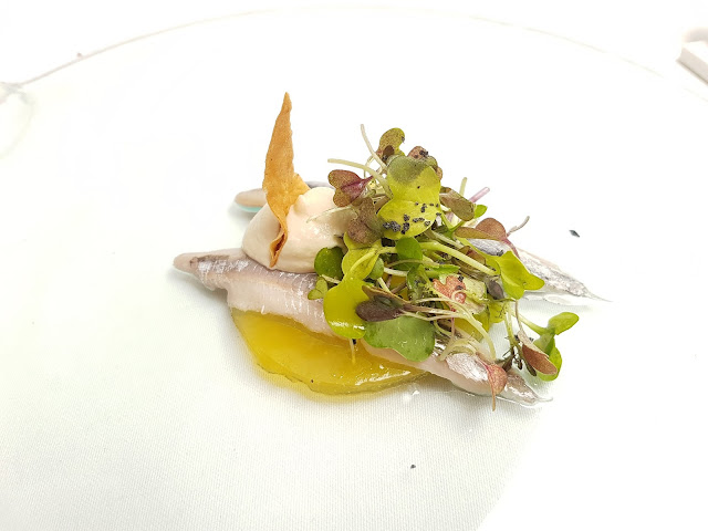 | Ensalada de Boquerón Marinado, Naranja y Emulsión de aceituna |