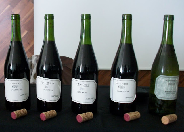 Todos los vinos de muestra fueron presentados en forma monovarietal , aunque como indicó Miguel Torres, la bodega está realizando todo tipo de pruebas, coupages y distintas formas de elaboración hasta encontrar la forma idónea de expresión de cada uno.