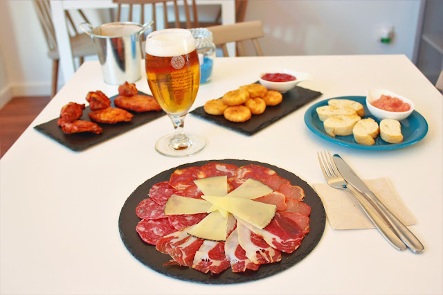Mención aparte merece el surtido de ibéricos , obra y gracia de la firma valenciana Lázaro Fernández , y sobre todo, el sobresaliente jamón ibérico de Extrem , de la Dehesa de Extremadura, un jamón de bellota al 100% al que sucumbirá irremediablemente cualquier aficionado a este insigne manjar, pues se funde literalmente en el paladar, dejando percibir ese sabor y esa textura tan difícil de explicar a alguien que no haya probado nunca un auténtico y genuino jamón ibérico de bellota.