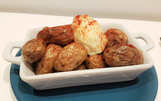 Las tapas están cuidadas y abren el apetito del comensal para lo que vendrá después. Muy buenas las Patatas bravas al estilo Macabeo , receta en la que se utilizan pequeñas patatas de muy buena calidad que son hervidas con su piel y servidas con un suave ajoaceite. El Pulpo troceado sobre alioli con pimentón de la Vera y flor de sal ahumada es un plato reconfortante y tremendamente gustoso, el pulpo muy tierno, la patata sabrosa y el punto de sal alegra el paladar. Muy buenos también el Medallón de foie micuit con mermelada de arándanos y pétalos de azahar , las Verduras en tempura y los Bocados de queso de cabra fritos acompañados de una fina confitura de tomate.