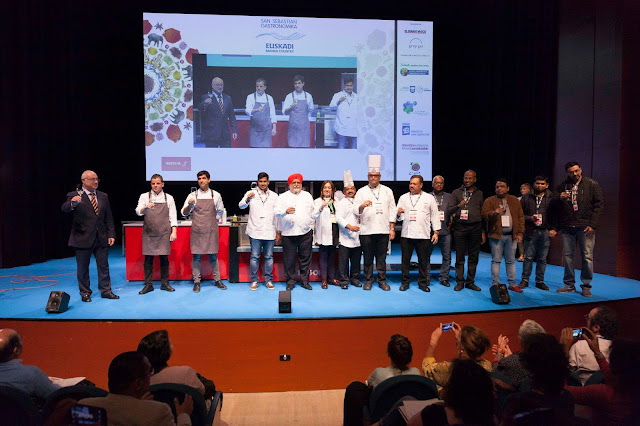 Los nuevos sabores hablan en boca del congreso, enfatizados en este caso mediante el uso de las especias y sus propiedades nutritivas . “ Podemos aprender y retroalimentarnos en su uso, tanto cocineros de aquí como de allí ”. Surinder ha aclimatado al público que llenaba la Sala de Cámara del Kursaal, y Varun Mohan (Royal Vega, Chennai) y J. P. Singh (Bukhara, Delhi) han profundizado en los detalles de la cocina del país asiático con sendas charlas con degustación sobre dos conceptos que centralizan la cocina india: el vegetarianismo y los tandoor . El no uso de alimentos de procedencia animal es inherente a la cocina india, no en vano el 60% de sus habitantes lo practican, como lo es también el uso de los hornos tandoor “ donde cocinamos y mantenemos calor ”, ha comentado Singh, unos continentes ancestrales que multiplican los sabores de los alimentos. Sabores, sabor, “el objetivo de nuestra cocina” , ha resumido Mohan.