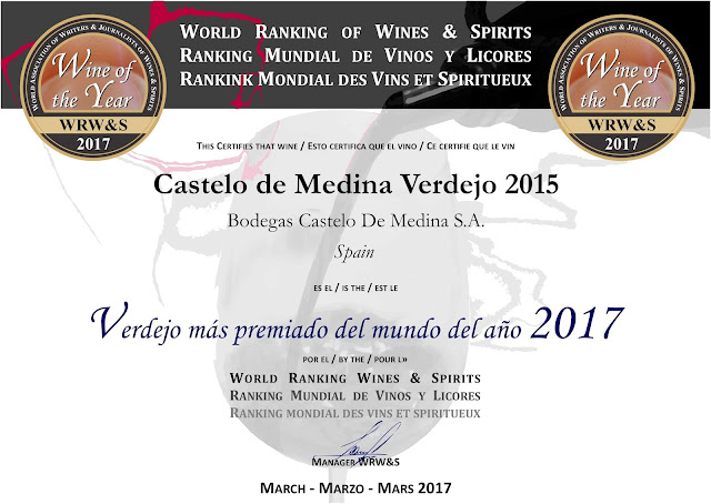- Después de haberlo conseguido ya en 2014 y 2016, el Castelo de Medina Verdejo ha recibido nuevamente en 2017 el galardón de mejor vino de su categoría en el ranking mundial de vinos elaborado por la Asociación Mundial de Periodistas y Escritores de Vinos y Licores (WAWWJ).