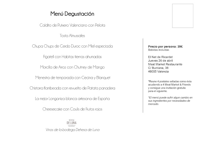 Este jueves 26, y dado el interés generado, habrá una doble sesión tanto a mediodía como por la noche. Puedes obtener toda la información en: la web del restaurante http://www.meatmarketrestaurante.com y para reservar, nada más fácil que llamando al teléfono 963 94 49 09 o a través del email