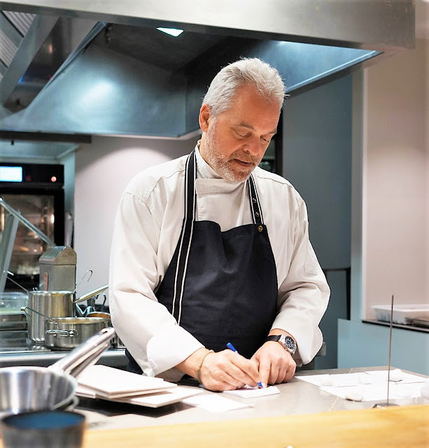 , aúna la sencillez y sofisticación del chef, así como la simplicidad y autenticidad de su cocina. En los diferentes espacios del local se puede disfrutar de una amplia cocina a la vista, apta para brasas, wok y mucho más.