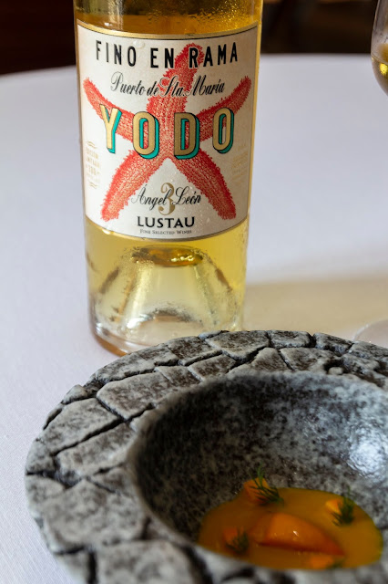 por tercer año se han cruzado los barcos de Lustau y Aponiente en este Molino de mareas donde estamos. Volvemos al Fino buscando la singularidad de un vino con sabor a mar que acompaña muy bien la cocina de Ángel. Aprovecho para darle la enhorabuena por las tres estrellas y para matizar el sabor a equipo de un vino homenaje a la Tripulación de Aponiente