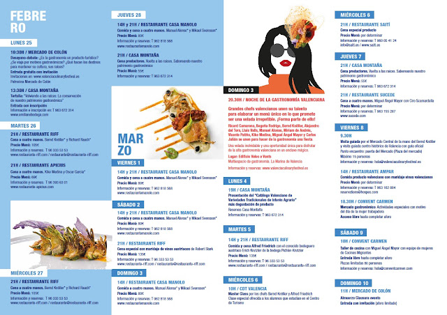 - Del 25 de febrero al 10 de marzo, Valencia celebra un evento dedicado a la alta cocina en el que se darán cita algunos de los chefs más destacados del panorama nacional e internacional