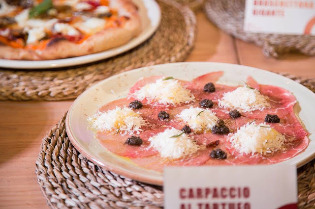 como Bresaola, Porchetta, Prosciutto crudo, queso Scamorza ahumado, queso Taleggio, Burrata de Campania.